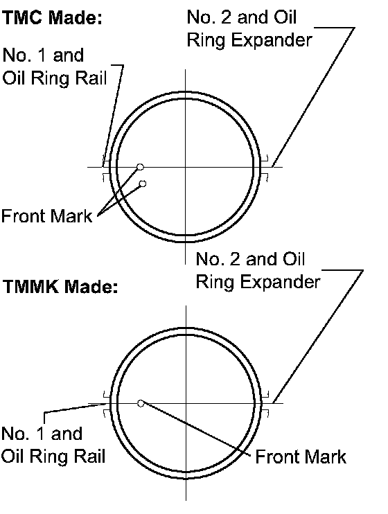- Install the expander and oil ring so that their ring ends are at opposite sides.