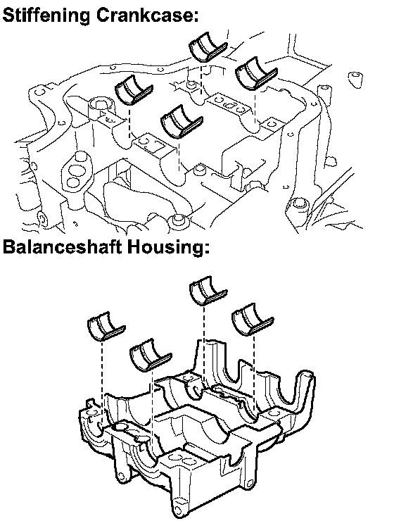 NOTICE: The balance shaft housing bolts are tightened in 2 progressive steps.