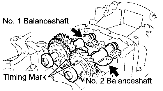 (b) Align the timing marks of the No. 1 and No. 2 balance shafts as shown in the illustration.