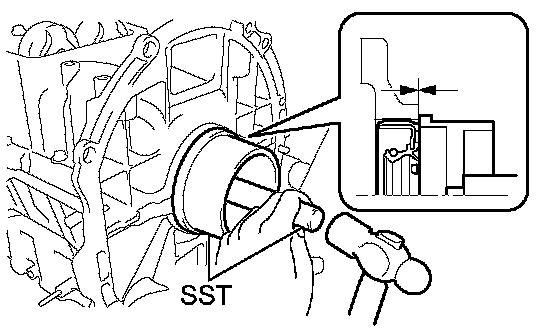 (a) Using SST and a hammer, evenly tap the oil seal until its surface is flush with the rear oil seal retainer edge.