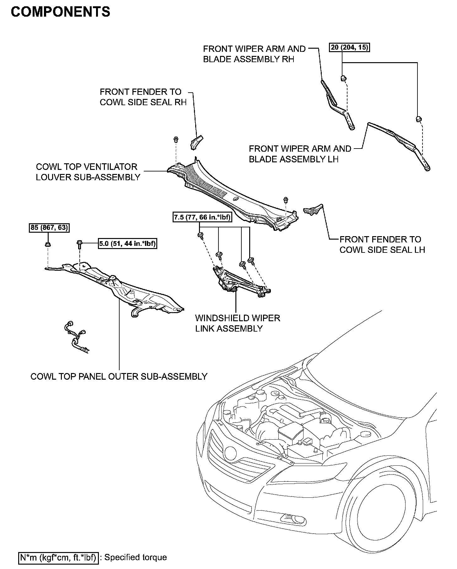 14. REMOVE COWL TOP PANEL OUTER SUB-ASSEMBLY