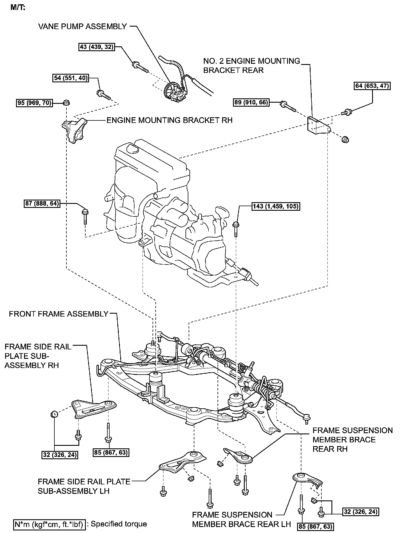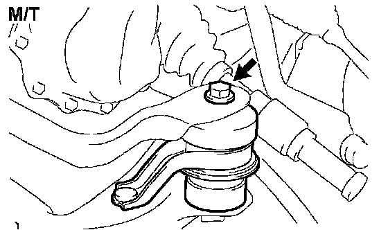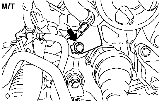 (b) M/T: Remove the bolt from the engine mounting insulator LH.