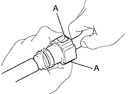 (b) Disconnect the connector from the tube while pinching part A with your fingers as shown in the illustration.