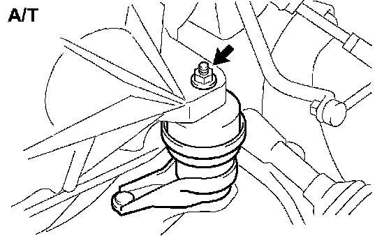 (a) A/T: Remove the nut from the engine mounting insulator LH.