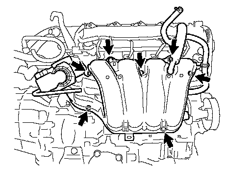 (a) Remove the 5 bolts, 2 nuts, and intake manifold.