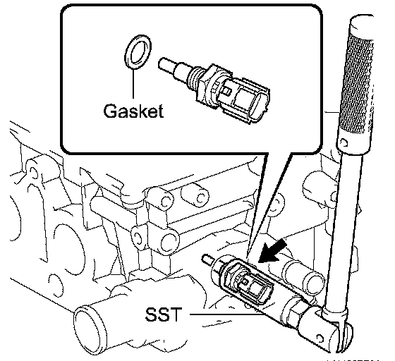 (a) Using a 24 mm deep socket wrench, remove the engine oil pressure switch assembly.