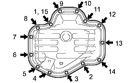 (d) Uniformly tighten the 12 bolts and 2 nuts in the sequence shown in the illustration.
