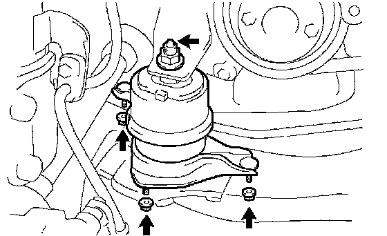 (f) Raise the engine and remove the engine mounting insulator RH.