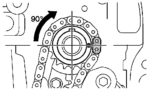(a) Turn the crankshaft by 90° counterclockwise to align the adjusting hole of the oil pump drive shaft sprocket with the groove of the oil pump.