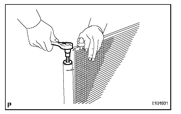 c. Using a straight hexagon wrench 14 mm, install the cap to the cooler condenser core.