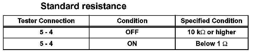 If the result is not as specified, replace the hazard warning signal switch assembly.