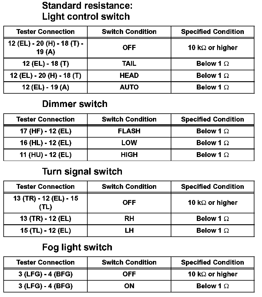 Headlamp Dimmer Switch: Testing and Inspection