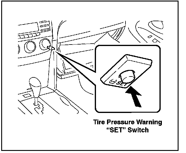 2. Push and hold the Tire Pressure Warning "SET" switch for 3 seconds until the Low Tire Pressure Warning Light blinks 3 times.
