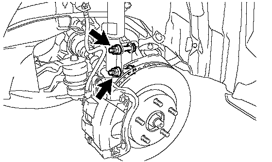 NOTICE: Do not twist the brake hose when installing the front disc brake caliper assembly.