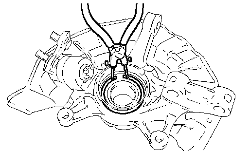 (a) Using snap ring pliers, install a new front axle hub hole snap ring.