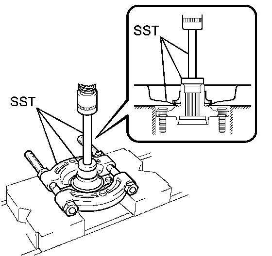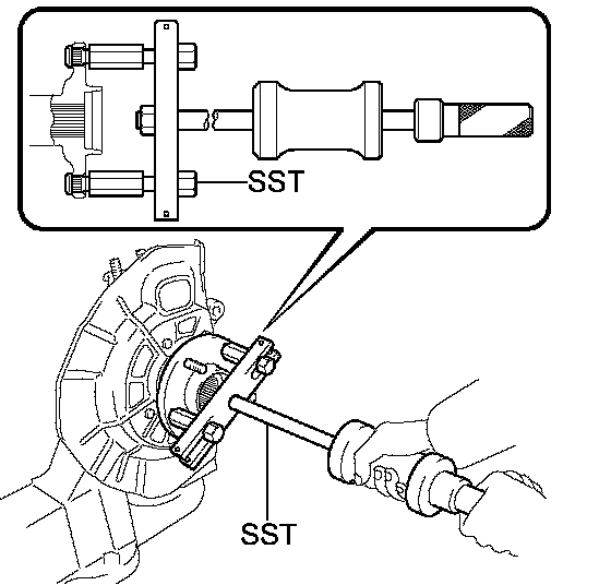 (b) Using SST, remove the front axle hub subassembly.