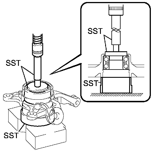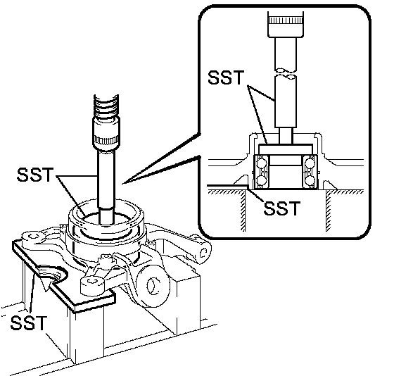 (a) Using SST and a press, install a new front axle hub bearing to the steering knuckle.