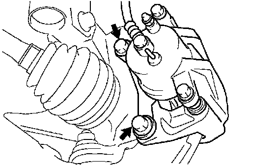 (a) Remove the 2 bolts and separate the front disc brake caliper assembly from the steering knuckle.