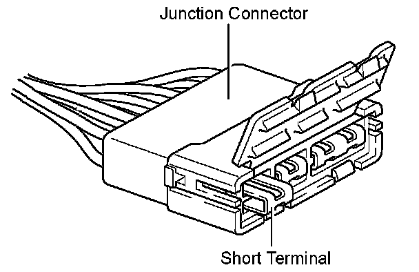 Junction connector include a short terminal which is connected to a number of wire harnesses. Always perform inspection with the short terminal installed.