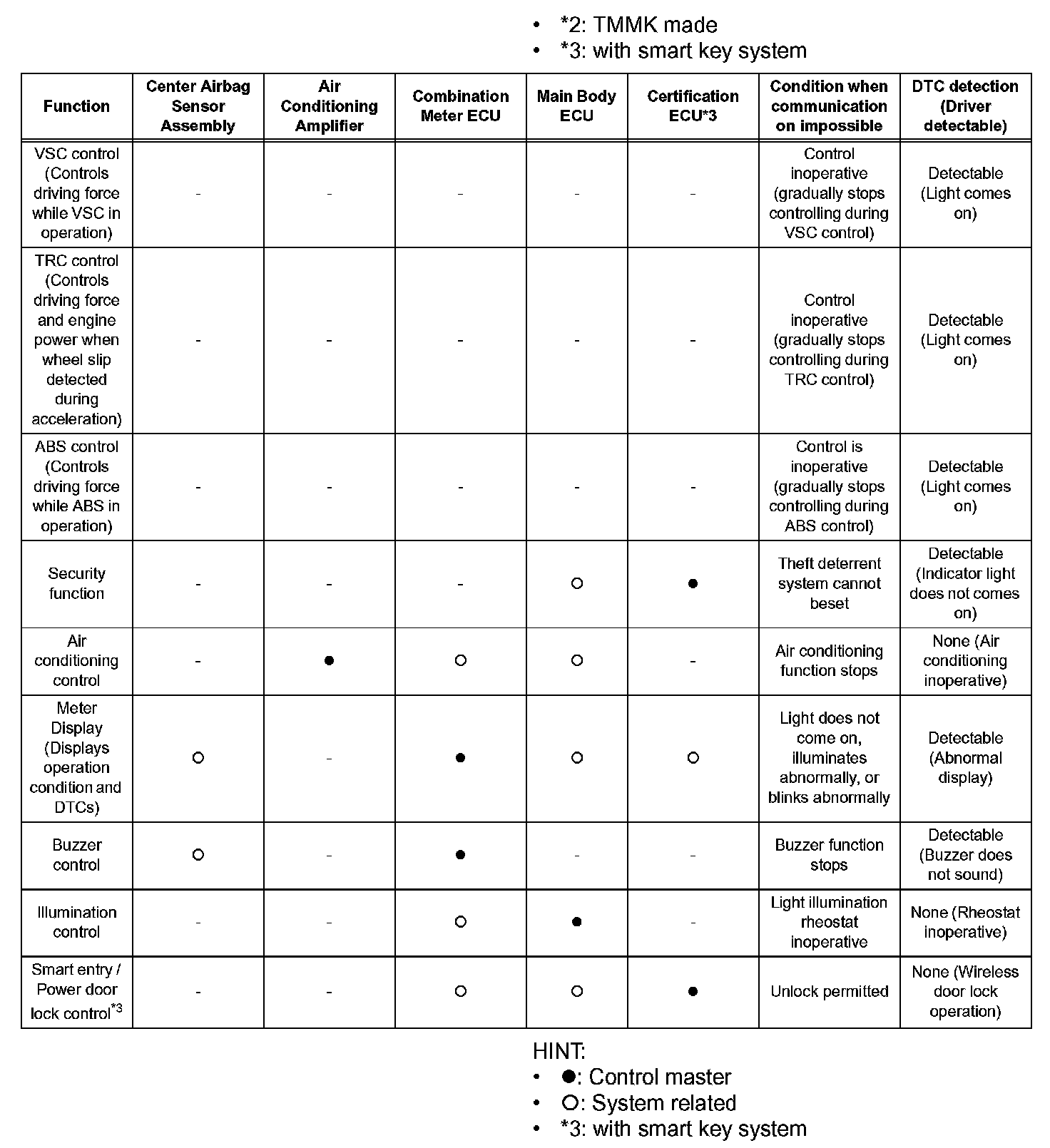 a. When communication fails in any of the CAN bus wire (communication lines) due to a short circuit or other causes, a fail-safe functions, will operate. The fail-safe function that is specified for each system operates to prevent those systems from malfunctioning.