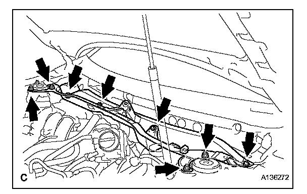 a. Remove the 4 bolts, 4 nuts and cowl top panel outer sub-assembly.