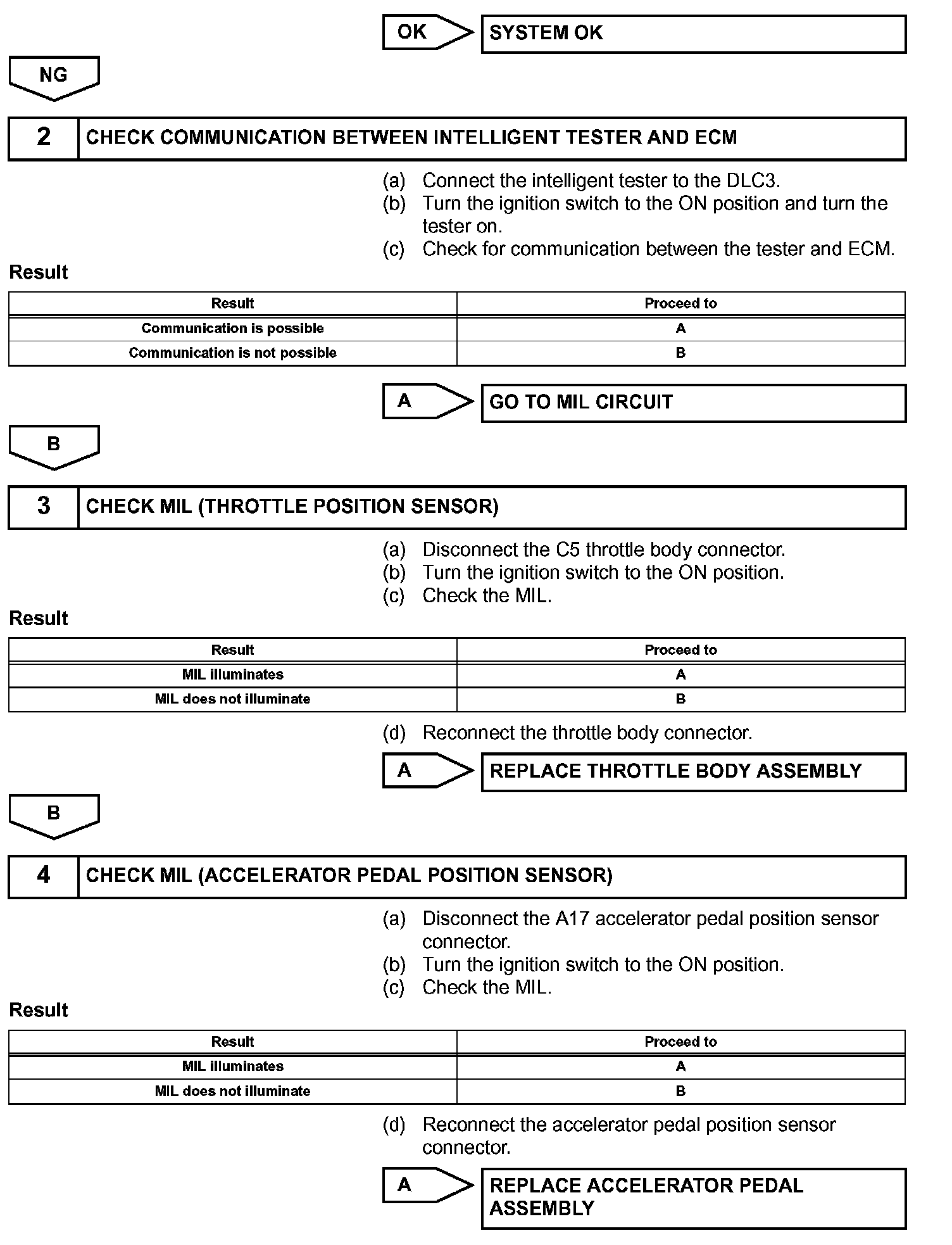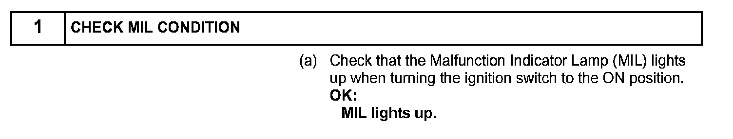 HINT: Under normal conditions, the MIL is illuminated for several seconds when the ignition switch is first turned ON position. The MIL goes off when the engine is started.