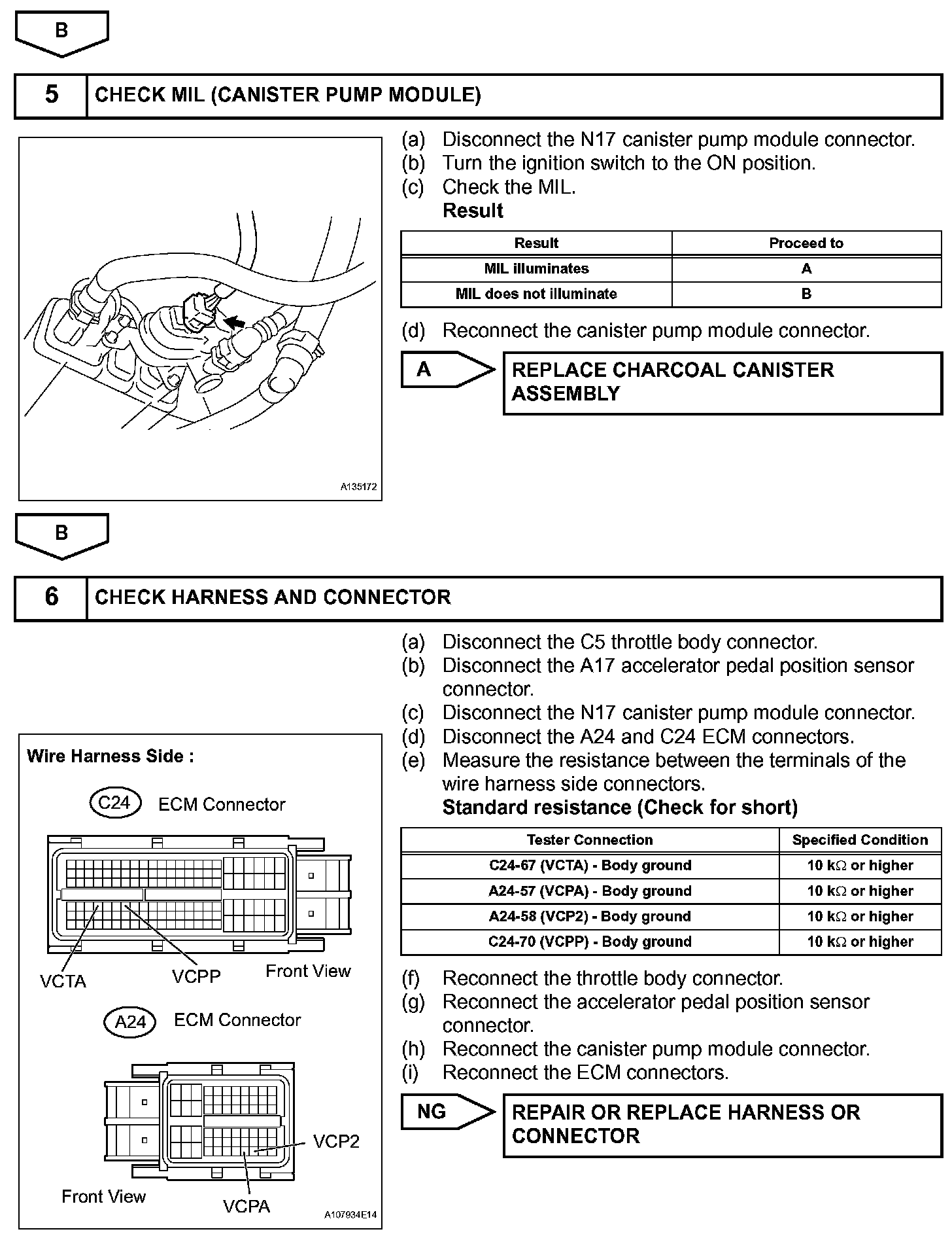 When the VC circuit is short-circuited, the microprocessor in the ECM and sensors that are supplied with power through the VC circuit are inactivated because the power is not supplied from the VC circuit. Under this condition, the system does not start up and the MIL does not illuminate even if the system malfunctions.