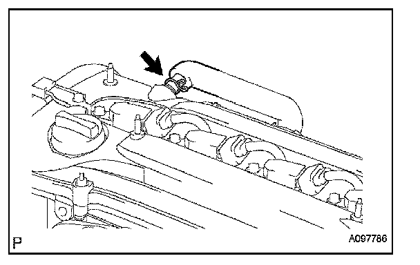 c. Install the fuel delivery pipe together with the 4 fuel injectors, then temporarily tighten the 2 bolts.