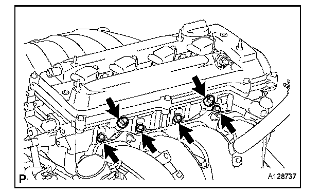 d. Remove the 2 delivery pipe spacers from the cylinder head.