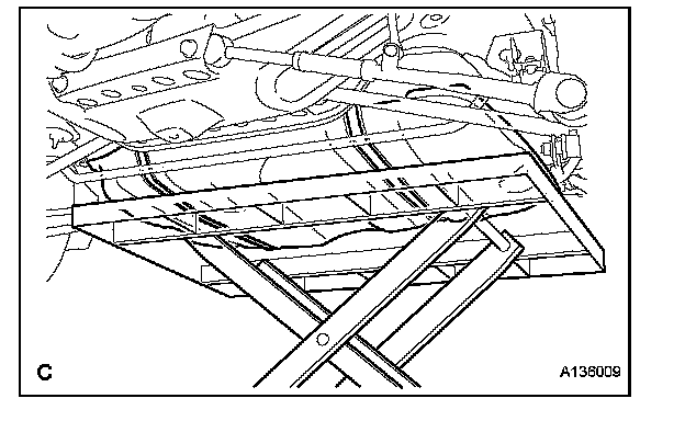 f. Slightly lower the transmission jack.