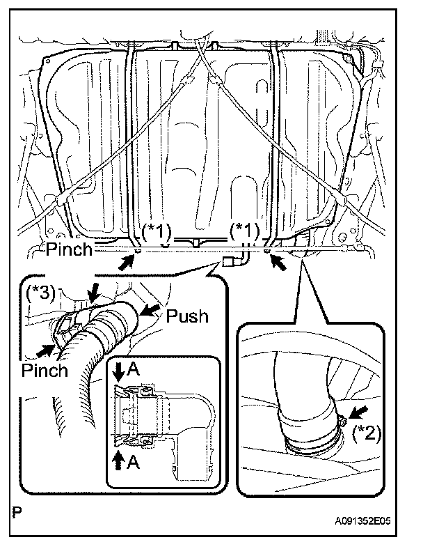 1. Pinch the tube connector and then pull out the No. 1 fuel tube.