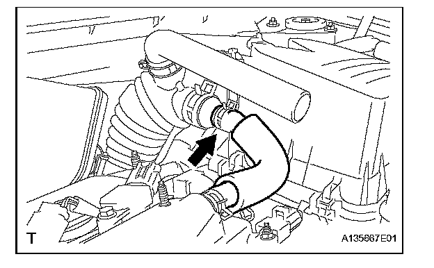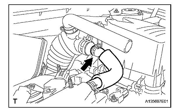 e. Disconnect the No. 2 ventilation hose from the air cleaner hose.