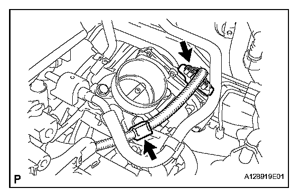 a. Disconnect the throttle position sensor connector and wire harness clamp.