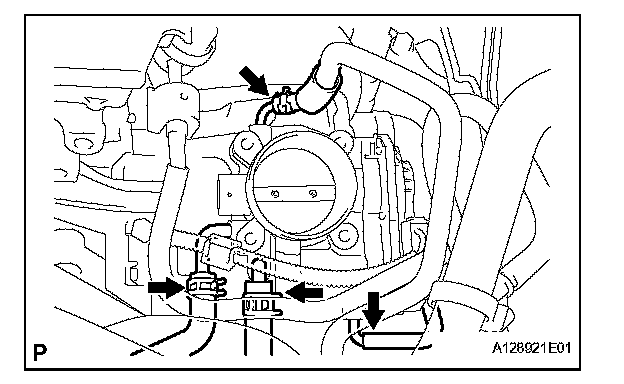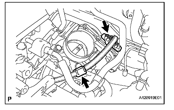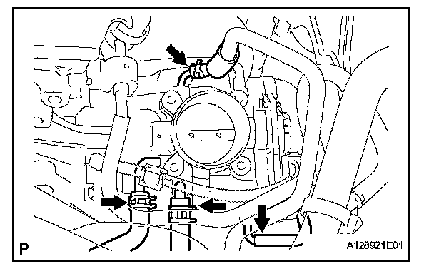 d. Disconnect the water by-pass hose from the throttle body.