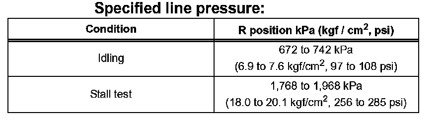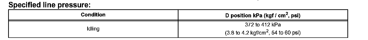 ^ Perform the test at the normal operating ATF (Automatic Transmission Fluid) temperature: 50 to 80°C (122 to 176°F).