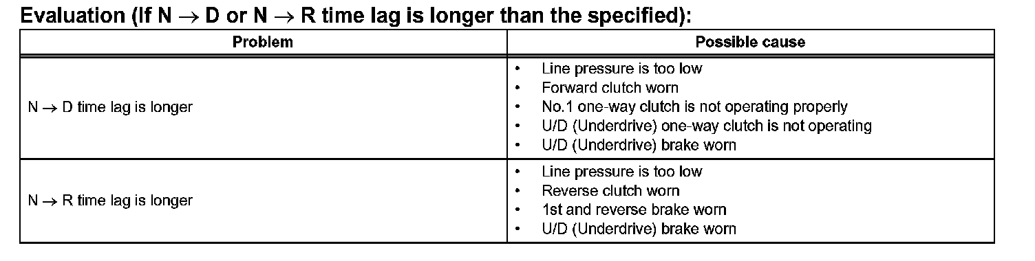 (5) Shift the lever from N to D position. Using a stop watch, measure the time from when the lever is shifted until the shock is felt.