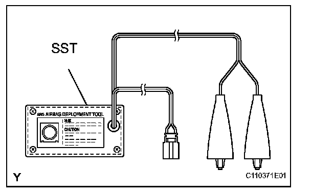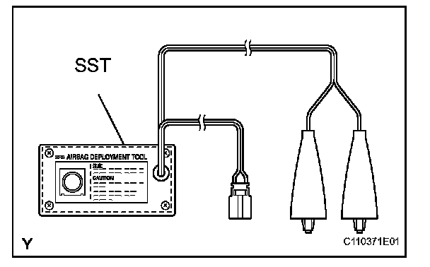 - When deploying the airbag, always use the specified SST (SRS Airbag Deployment Tool). Perform the operation in a place away from electrical noise.