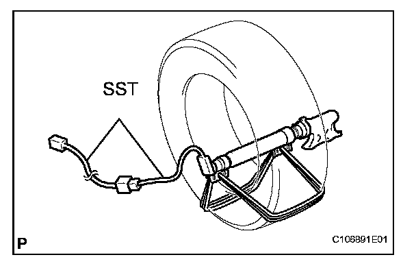 NOTE: Do not place the SST connector under the tire because it could be damaged.