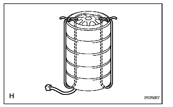 CAUTION: Make sure that the wire harness is tight. Looseness in the wire harness results in the tires coming free due to the shock when the airbag is deployed.