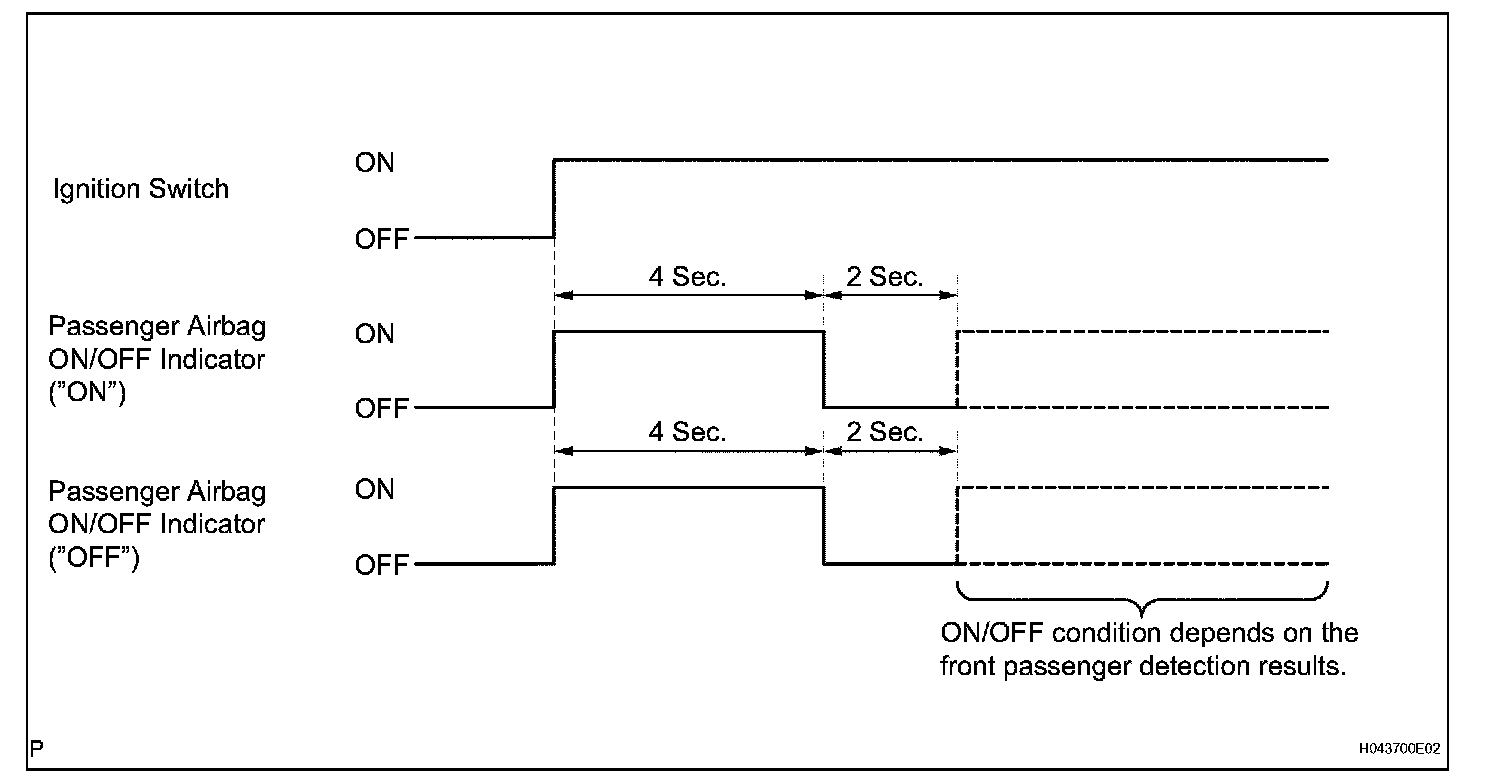 - The passenger airbag ON/OFF indicator is based on the timing chart below in order to check the indicator light circuit.