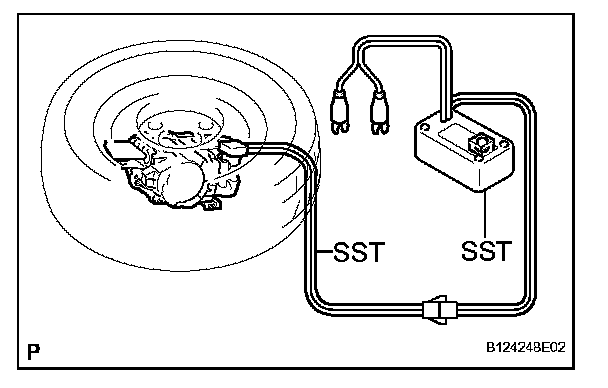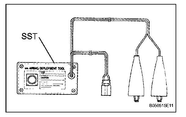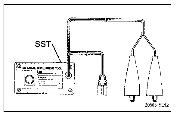 - When deploying the seat belt pretensioner, always use the specified SST (SRS airbag deployment tool). Perform the operation in a place away from electrical interference.