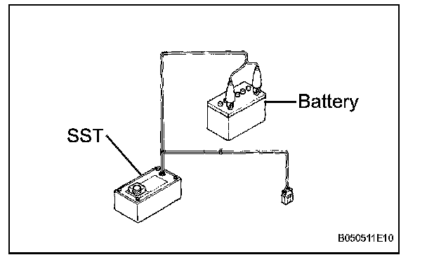2. Connect the red clip of the SST to the battery positive (+) terminal, and the black clip to the battery negative (-) terminal.