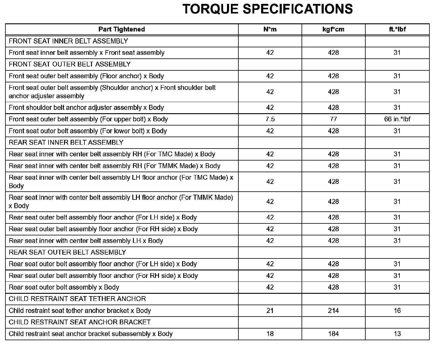 Seat Belt - Torque Specifications: