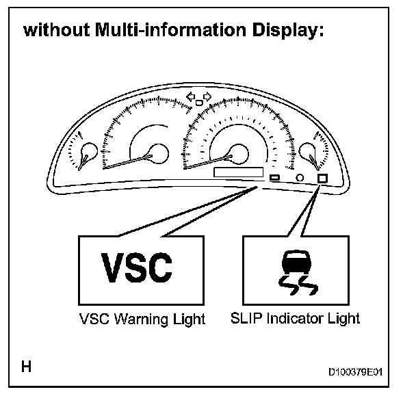 - If the "CHECK VSC SYSTEM" message appears on the multi-information display and SLIP indicator light do not come on in procedure "H", repeat the procedures from "A" to "H".