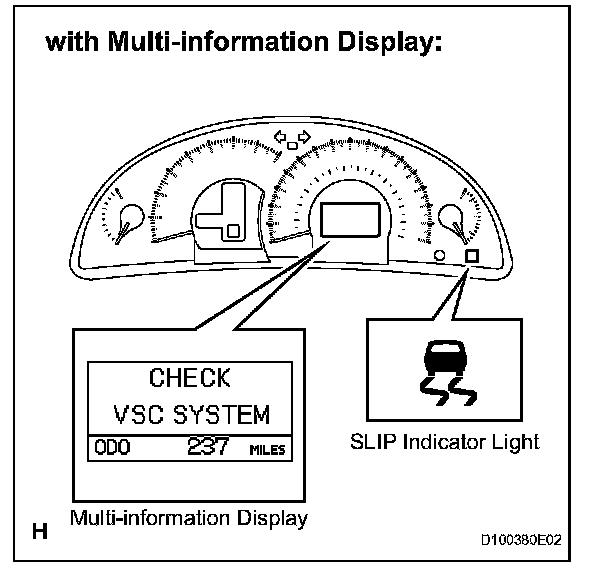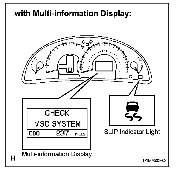 Check that the "CHECK VSC SYSTEM" message appears on the multi-information display and SLIP indicator light come on (Procedure "H").