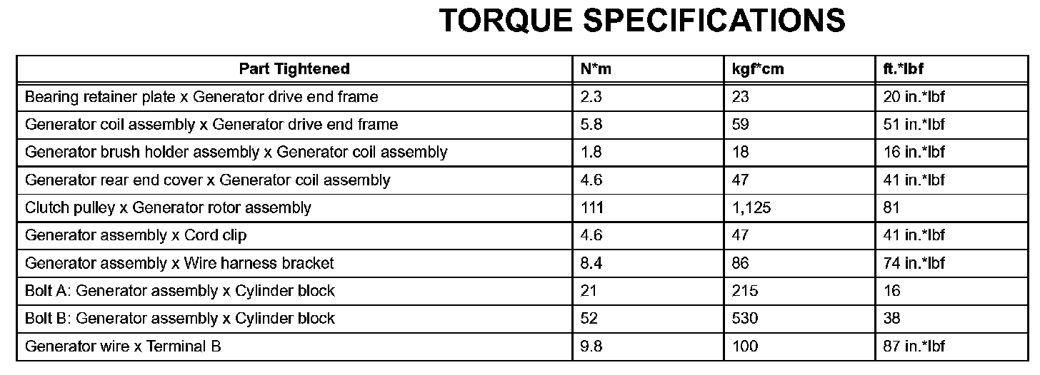 Charging - Torque Specifications: