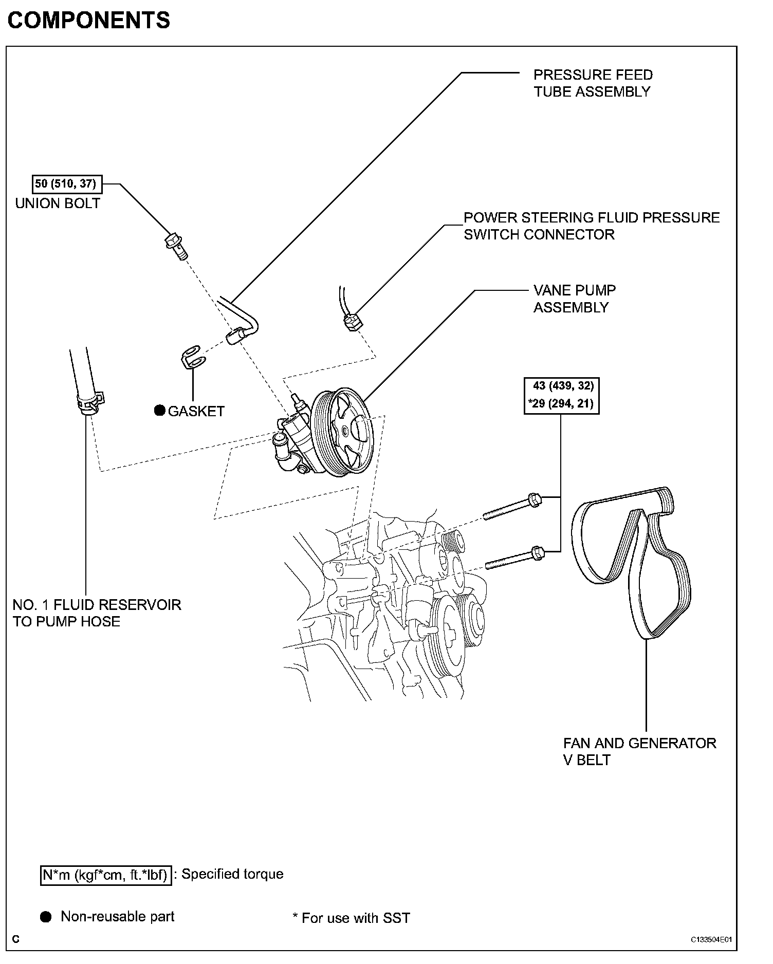 (a) Remove the union bolt and disconnect the pressure feed tube assembly from the vane pump assembly.