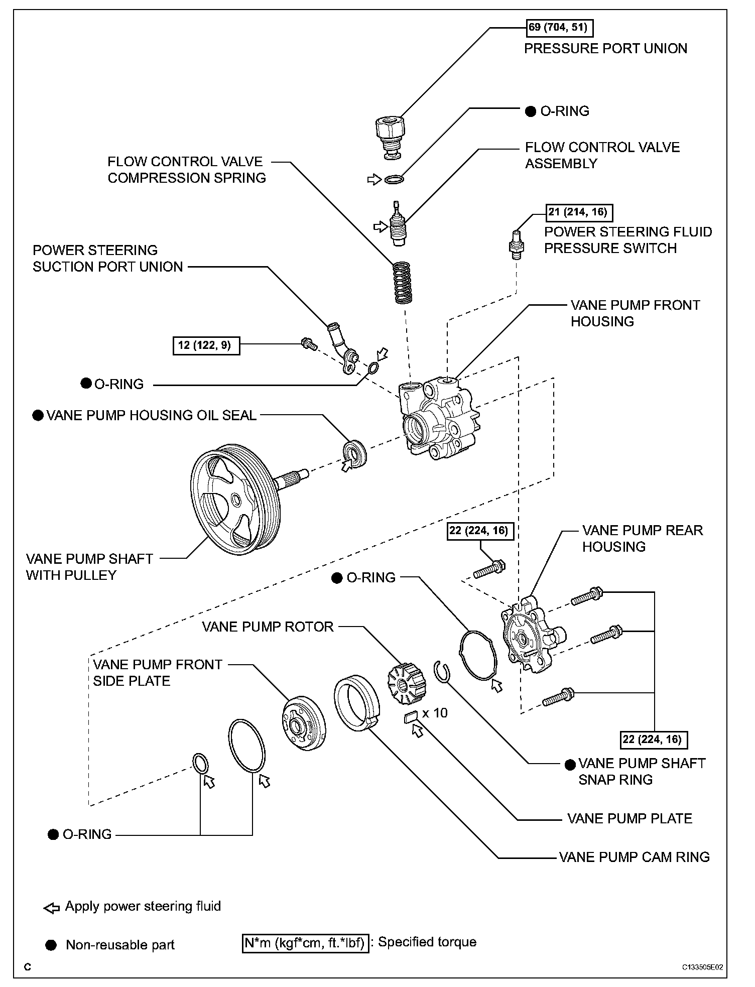 (b) Coat the 10 vane pump plates with power steering fluid.