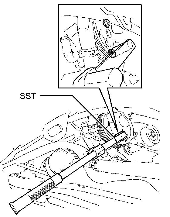 (a) Using SST, loosen the 2 bolts and remove the vane pump assembly.
