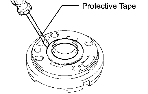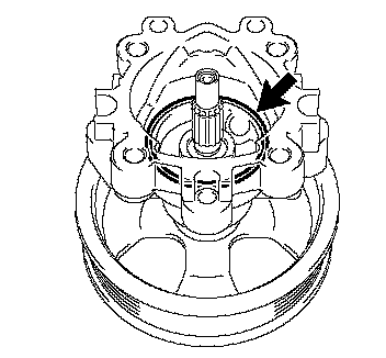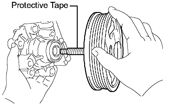 HINT: Wrap protective tape around the spline of the vane pump shaft with pulley in order to prevent damage to the oil seal.